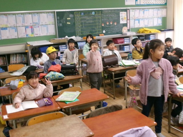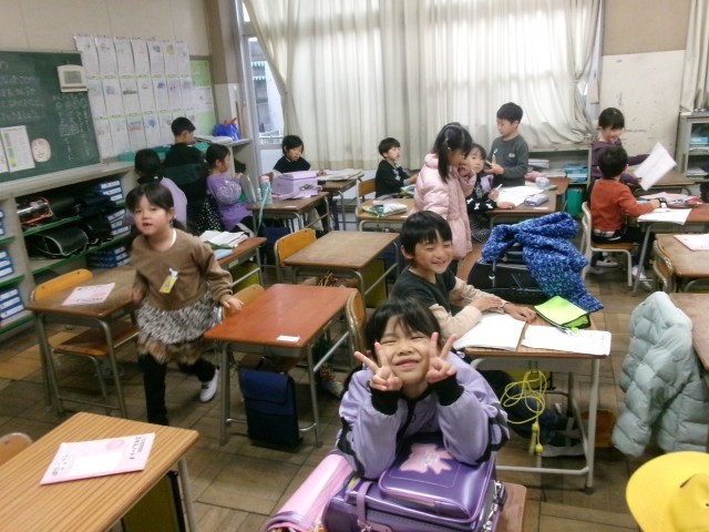 12/8 今朝 1年生の教室「みんな笑顔!」