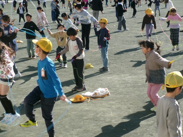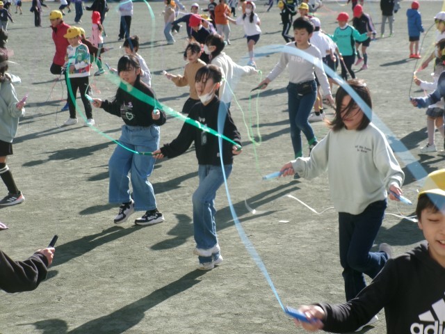 今日の大放課、先生と子どものようすです。先生は子どもたちと一緒に遊ぶ時間を大切にしています。運動場では、多くの子どもたちが先生となわとびをしていました。また、ペア学年のお姉さんにお遊んでもらっている小さな子もいました。子どもたちも先生も笑顔でした!※3枚目の写真も「+」をクリックするとその他の笑顔が見られます。