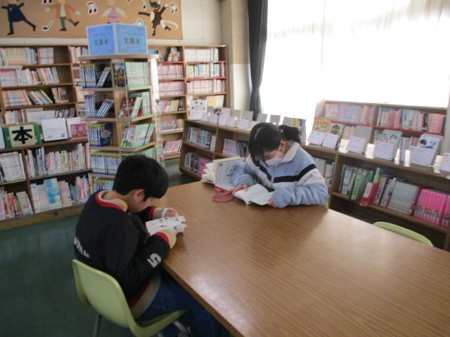 昼放課の様子です。面白そうな本は見つかったかな。どんどん利用していきましょうね!
