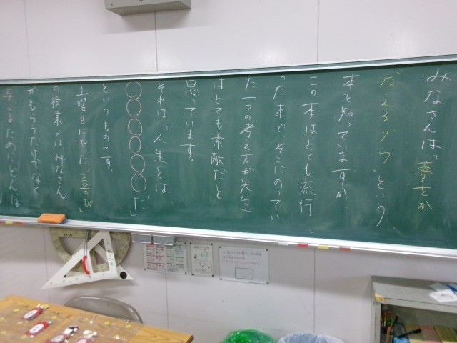 1/28 今朝の黒板「夢をかなえるゾウう!」