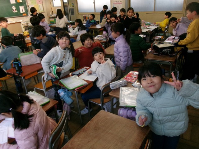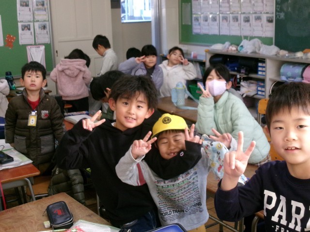 2/3 今朝 1年生の教室「みんな笑顔!」