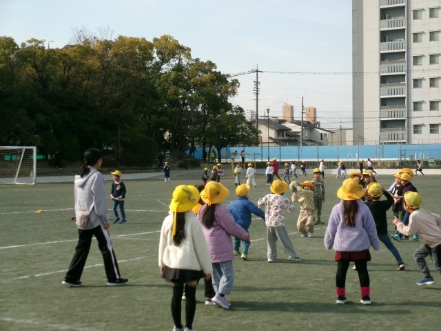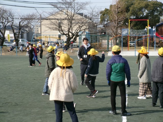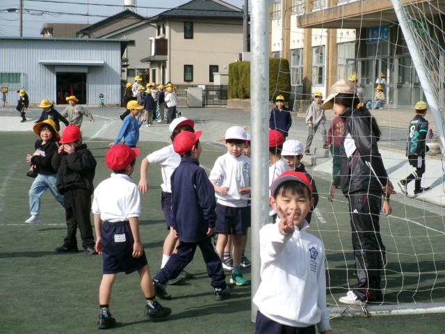 3月中旬頃の気温で、大変暖かく感じます。多くの子が運動場で走り回っています。また、お兄さんと一緒にドッジボールをしている子どもたちを見守っている先生がいました。また、一緒に鬼ごっこをしている先生の姿もありました。※3枚目写真の「+」をクリックするとそれ以外の笑顔が見られます。