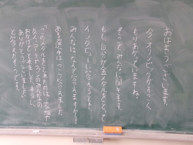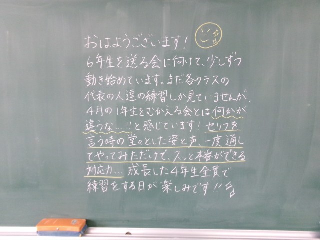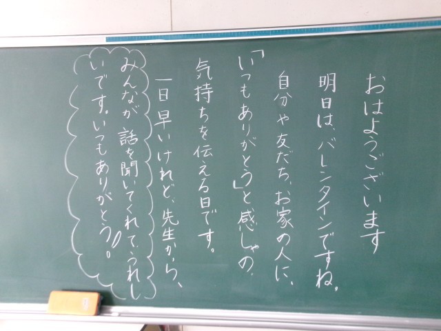 今朝の黒板のメッセージの一部です。「2 2 6 何の数字?」など冬季オリンピックについての記載が多くありました。担任が子どもたちに気持ちを伝えることで、学級の絆が強くなります。これからも担任の思いや願いをくみ取れる子どもたちであってほしいです。※3枚目写真の「+」をクリックすると、それ以外のコメントも見ることができます。