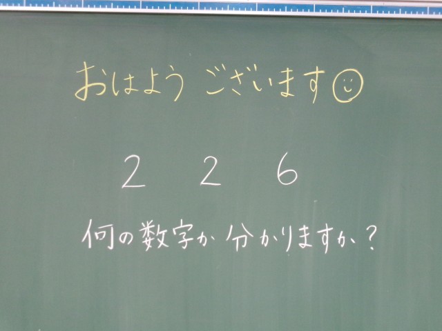 2/13 今朝の黒板「2 2 6 何の数字?」