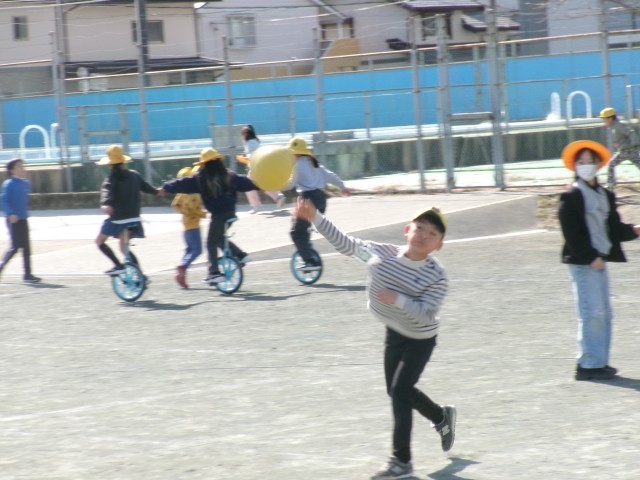 今日の放課、先生と子どものようすです。先生は子どもたちと一緒に遊ぶ時間を大切にしています。運動場では、多くの子どもたちが先生とドッジボールをしていました。また、ペア学年のお兄さんやお姉さんにお遊んでもらっている小さな子もいました。子どもたちも先生も笑顔でした!※3枚目の写真も「+」をクリックするとその他の笑顔が見られます。