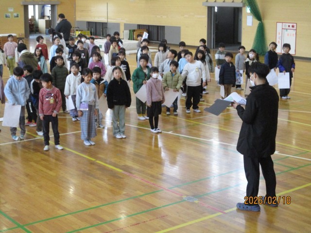 送る会の練習をがんばっています。今日は隊形移動やせりふを言うタイミングを確認しました。ペアの6年生のお兄さん、お姉さんのためにまだまだがんばります。