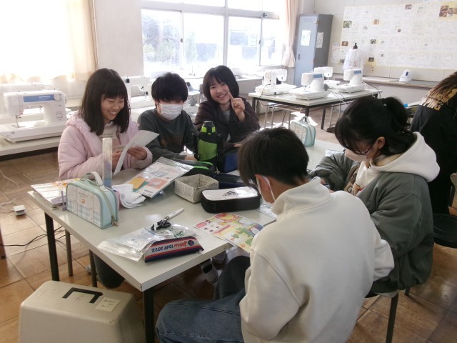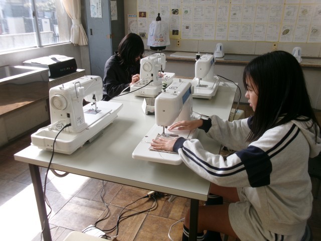 ミシンやアイロンを使って製作しています。何が出来上がるのか楽しみですね。