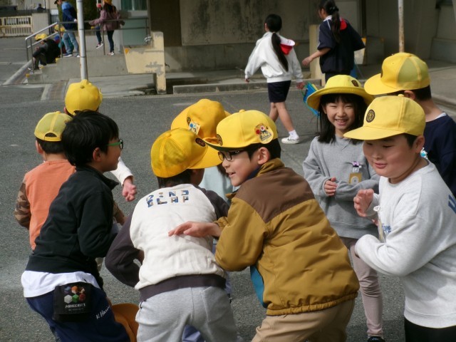 日差しがなく少し肌寒いですが、多くの子が運動場で走り回っています。また、お兄さんと一緒にドッジボールをしている子どもたちを見守っている先生がいました。また、一緒に鬼ごっこをしている先生の姿もありました。※3枚目写真の「+」をクリックするとそれ以外の笑顔が見られます。