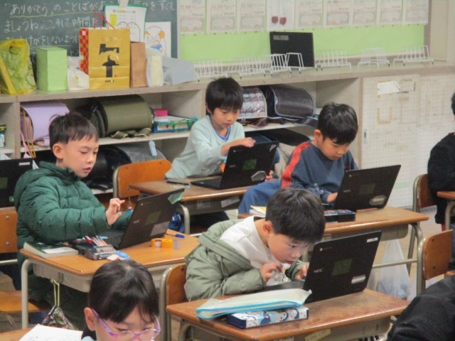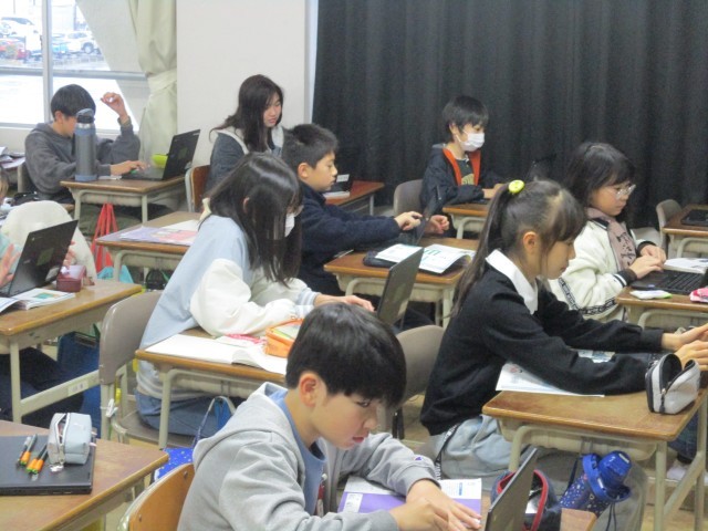 各クラスで学習用端末を活用して復習を行ったり、ドリルやプリントで繰り返し練習に取り組んでいます。