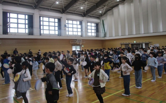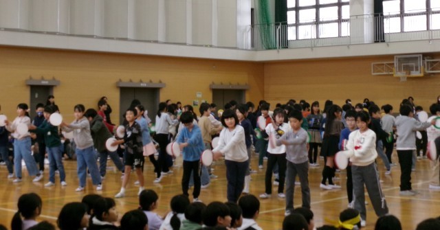 今日は卒業生を送る会がありました。4年生全員で、呼びかけをしたり太鼓を使ってダンスをしたりしました。広いアリーナには、4年生の声や太鼓の音が一つになって響いていました。6年生にも感謝の気持ちをしっかり伝えることができたと思います。