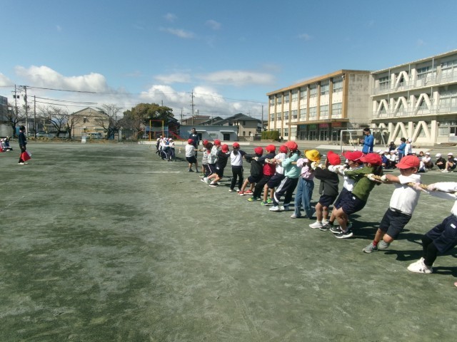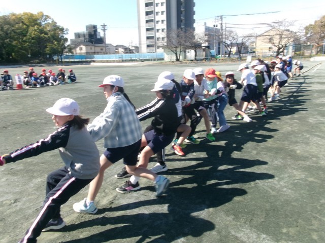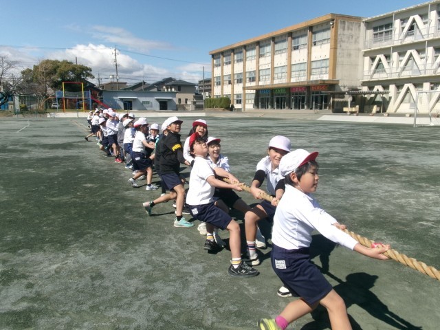 今日は3年生でスポーツ大会を行いました。今回は「つなひき」を行い、クラスで力を合わせて一生懸命頑張る姿はとても立派でした。この頑張る力を活かして、今後の活動や4年生になったときにも活かしてほしいなと思います。