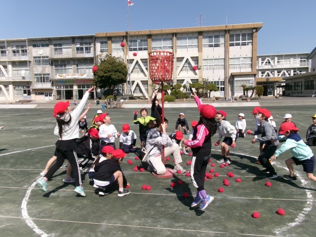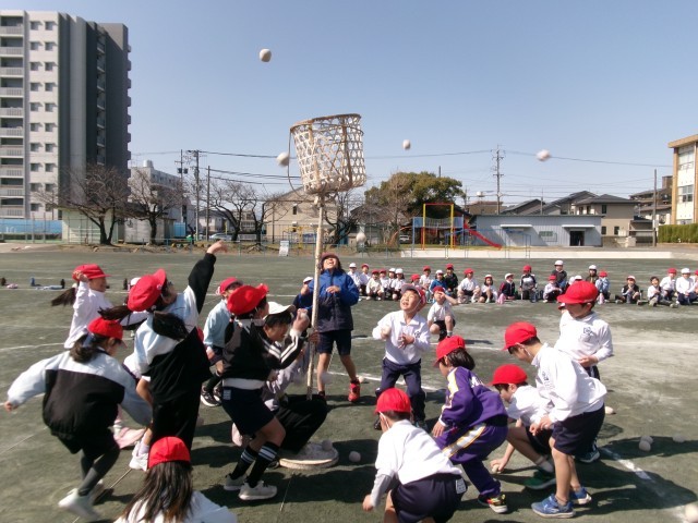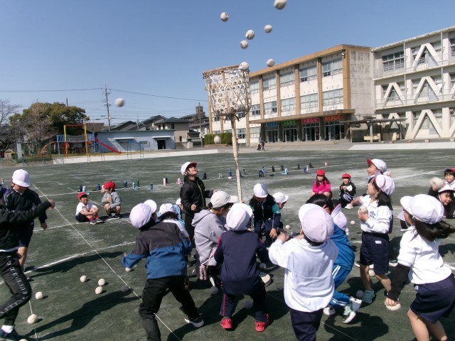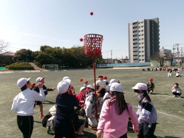 クラスのみんなで協力して、たくさん玉をかごに入れることができました。