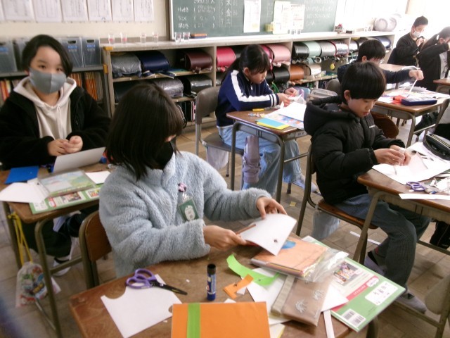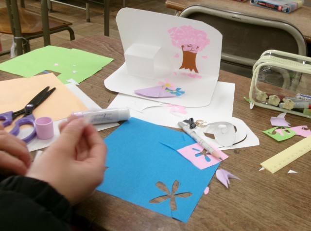 図工の時間は、家族や友達にわたす飛び出すカードを作り始めました。どの子も、仕組みを使って、何をどのように動かすのかをじっくり考えながら作っていました。気持ちが伝わる素敵なカードができそうです。