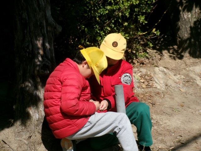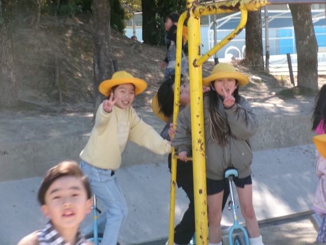 今日の放課「かみやまのもり」のようすです。やまの頂上・記念碑の前にも多くの子どもたちが集まっていました。仲間どうしで森の中を散策している子がたくさんいました。先生と「撮って~」と声をかけてくる子もいました。!※3枚目写真の「+」をクリックするとその他の笑顔が見られます。