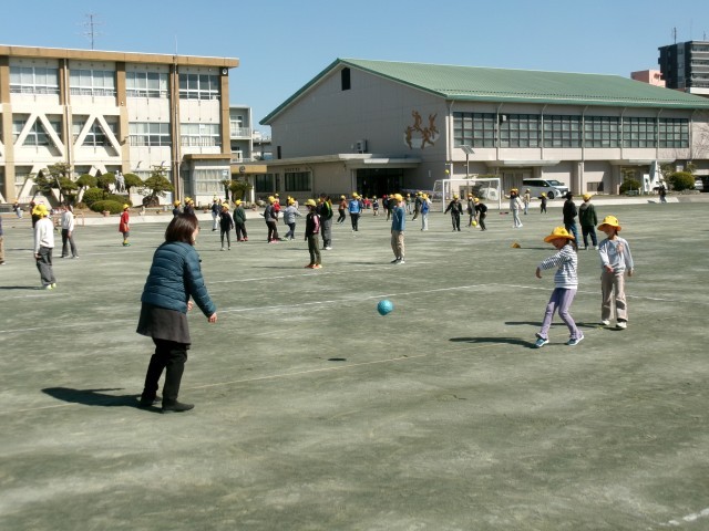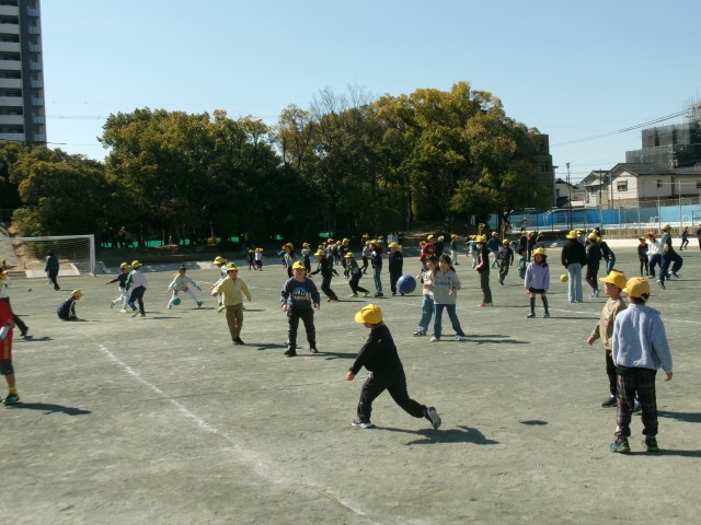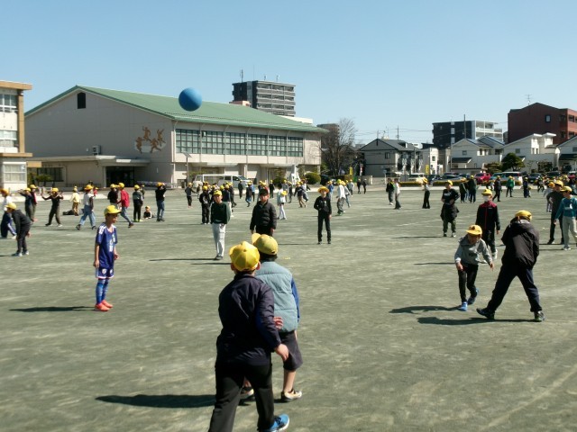 見上げるような清々しい青空の下、今日の大放課も運動場は元気いっぱいの児童たちで賑わっています。