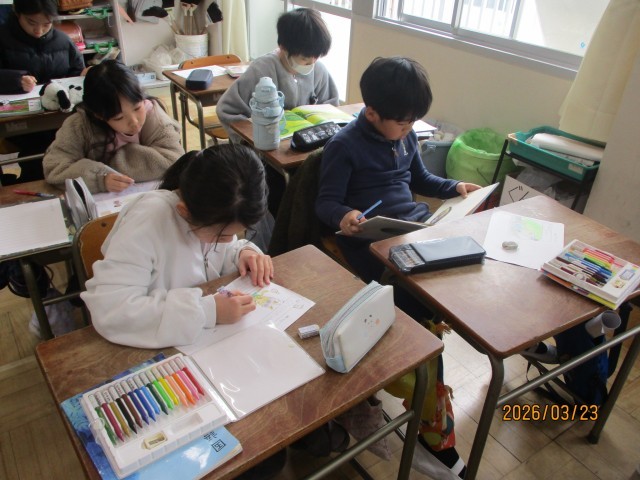 国語の授業で、学習した内容に関係している本を読みました。物語やエッセイ、図鑑や絵本など、学習した内容を思い出しながら、作文やカードに感想をまとめました。