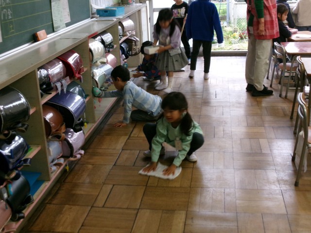 担任の先生や、6年生のお兄さんお姉さんに掃除道具の使い方や掃除の仕方を教えてもらいながら、掃除を一生懸命に頑張っています。きれいな環境は、きれいな心を育てます。きれいな教室、きれいな学校になるように頑張ってほしいです。