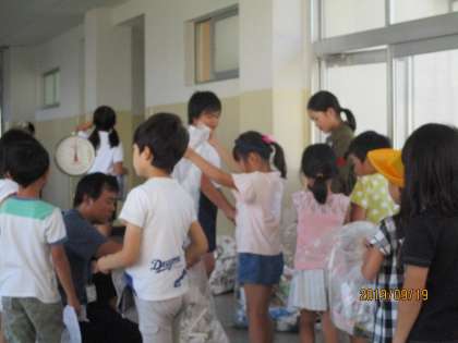 各クラスからゴミを持ち寄って、「よろしくお願いします。」と