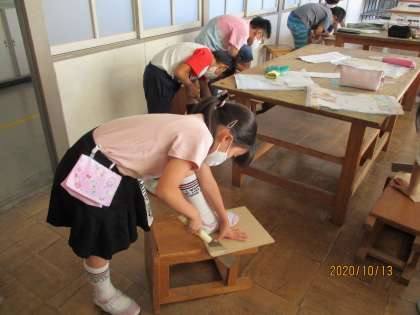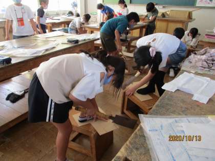 初めて使うのこぎりに苦戦しながらも、だんだん慣れてきて上手に切れるようになってきました。切るのは大変だけど、部品を一つずつ切り終わると達成感があり、やりがいがある作業です。力も入るので汗をかきながらがんばりました。