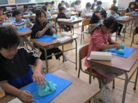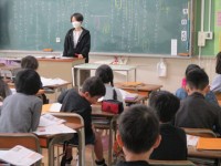 2年生が運動場で体育の授業をしています。昨夜の雪や今朝の凍結で、体育ができるか心配でしたが、お日さまのおかげでずいぶん渇きました。元気いっぱいで縄跳びをしています。仲間と声を掛け合って、技を磨いています。