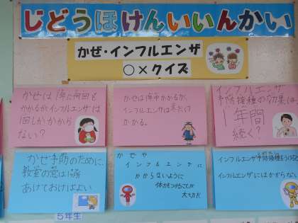 12/18 神山おうち教室 保健室より 公開日 2020/12/18 更新日 2020/12/18 保健室 保健室前廊下に、保健委員会が作ってくれたインフルエンザに関するクイズがあります。神山っ子の皆さん、見ましたか? 今週は寒い日が続きましたね。コロナウィルスとともに、風邪やインフルエンザも心配です。 そこで、問題です。写真の2枚目を見ましょう。 「かぜやインフルエンザにかからないように、体力をつけることが大切だ」 ○ですか? ×ですか? せいかいはこちら 閉じる ○です。 運動をして体力をつけることや、食事や睡眠をしっかりとることで、体の免疫力が高まり、風邪をひきにくくなります。 おうちでも、「早寝 早起き 朝ごはん」で生活リズムを整え、元気に過ごしてくださいね。笑顔で月曜日に会いましょう!!!