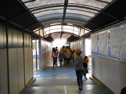 生活委員さんが、大放課や昼放課に、当番で渡り廊下に立っています。みんなが落ち着いて廊下を歩くことができるように、声かけをしてくれています。最初のころは、廊下いっぱいに広がったり、走って教室へ向かう子たちがたくさんいて、とても危険でした。でも毎日毎日声かけをしてくれたおかげで、今は、落ち着いて右側を歩くことができるよになってきました。毎日の積み重ねの力、とても大きいです。
