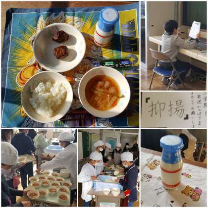 2週間ぶりの給食です。今日の献立は、ご飯、牛乳、ちゃんこ汁、肉団子、味付け海苔です。今日のちゃんこ汁に入っている「はくさい」は、鍋の材料として定番の野菜の一つです。1年中出回っていますが、旬は冬で、冬の寒さに耐えて育った「はくさい」は、甘味がぐんと増します。汁物に使うことで、とろけるような柔らかさと甘味を味わうことができます。