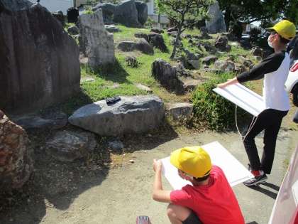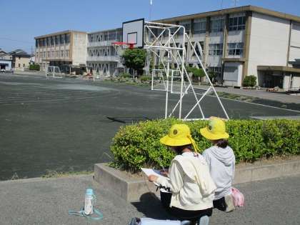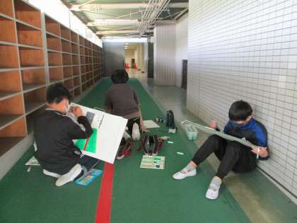 写生画も色塗りに入る子が増えてきました。陽の当たり方、影の方向、遠近のとらえ方…細かいところもひとつずつ確認して色を塗っています。