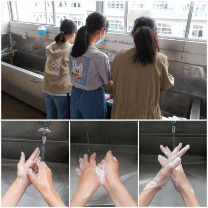 給食前はあわあわゴッシータイムです。写真は6年生の手洗い場の様子です。丁寧に手洗いをしていました。すてきなあわあわゴッシーさんがいっぱいです。