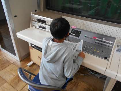 給食の時間になると、放送委員会の当番さんが放送室に集まってきます。「給食の時間が始まりました」からスタートして、今日の献立の紹介、今日の新聞記事の紹介など、役割分担をして進めていきます。テレビのアナウンサーのように、いろいろな情報をきちんと伝えるのが、放送委員の腕の見せ所。ある学級の放送委員の初仕事のときに、その子の声が教室のスピーカーから聞こえてくると、クラスみんなから拍手が起こっていました。