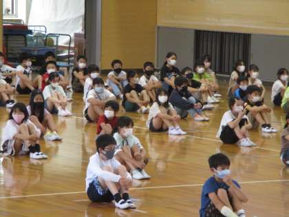 一年生を迎える会を行いました。5年生は「リズムなわとび」について発表しました。年間の行事について紹介した後、実際にリズムなわとびを見せました。3級、2級、1級のリズムなわとびだけでなく、紹介の声の大きさや後ろで座っている姿で5年生としての立派な姿を見せられたように思います。