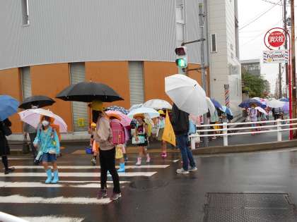 週明けの月曜日、雨の中の登校となりましたが、今日も地域の皆様、保護者の皆様に見守っていただきながら、神山っ子たちが元気に登校してきました。雨の日は1列に並んで登校になります。大きな交差点では、たくさんの班が集まってくるため、大変な長蛇の列です。信号を渡るのも、歩道で待つのも大変ですが、皆様のおかげで今日も安全に登校完了できました。朝早くからありがとうございました。班長さんも、小さい子の歩みに合わせてゆっくり進んであげている姿がたくさん見られました。班長さんありがとう。 早くも梅雨入りとなりました。校舎内で過ごす時間が長くなります。感染症予防はもちろん、けがにも気をつけて生活していきたいと思います。
