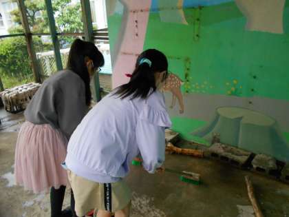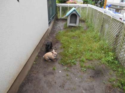 飼育委員の当番さんが、うさぎ小屋の清掃をしてくれます。床を水を流しながらゴシゴシしてもらい、きれいになりました。その間うさぎたちは、小屋の外で休憩タイム。土曜日や日曜日は、みんながいなくて、寂しかったのかな・・・。久しぶりの当番さんの登場に、うさぎたちはウキウキ走り回っていました。もふもふ・・・。