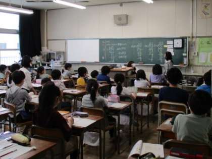 4年生の算数の授業では、「割り算の筆算」を頑張っています。今日は習ったことを生かして、(3けた)÷(1けた)の割り算の問題をどんどん解いていきました。答え合わせになったら、チームで黒板のところに出てきて、計算の流れを一人ずつ説明していきます。リレー形式でみんなでつないで、ちゃんと答えをだすところまで説明することができました。みんなで協力して、自信をもって答えていました。