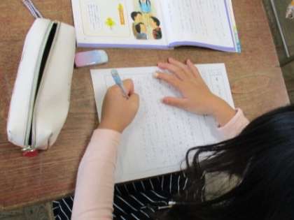 主人公の「ぼく」は、いつも一人でいる友達のことが気になっていました。ある日勇気を出して「一緒に遊ぼう」と言った「ぼく」の気持ち、たった一言のそのことばで、笑顔になった友達の気持ちを考え、「思いやり」について改めて考えました。そして、授業の最後に、「ぼく」や友達に手紙を書きました。