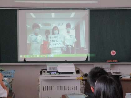 今朝は児童集会をzoomで行いました。児童会役員のみんなの進行で、委員会の発表を行いました。パソコン室は、まるでテレビ局のスタジオのようです。テレビキャスターの人のように、テレビ画面に向かって伝えたり、ボードを見せながら説明したりしています。教室でも、テレビ画面を間近に見ることができます。オンラインだからこその効果です。そして、直接対面はしていなくても。委員会の発表が終わると、教室から拍手がそろって聞こえてきます。今日も、気持ちがみんな一緒になっている感覚を味わえました。