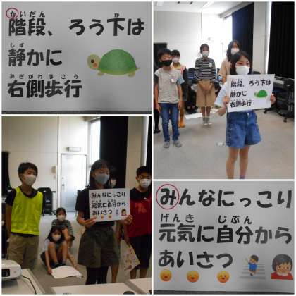 生活委員会のみんなが、かみたんとやまたんと一緒に、ろう下などでみんなを見守ってくれます。「かみやま」しっかり守っていこうね。