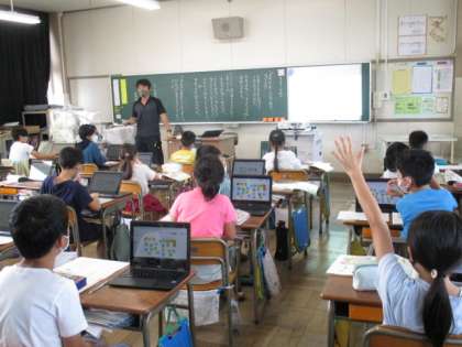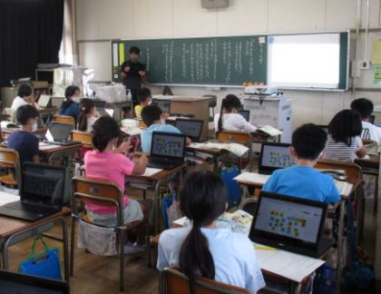 道徳の授業で、「きまりのない国」というお話を読み、きまりは何のためにあるのかを考え、話し合いました。最初は、きまりなんてなくてもいいかな…と思っていたのに、なくなったら、元の国に戻りたいと考えるようになった心の変化について、考えました。そして、自分の身の回りにあるきまりや約束について振り返ってみて、考えたことをどんどんタブレットに入力していきました。そして、みんなが安全に気持ちよく生活するために、きまりって大切だという意見にまとまっていきました。