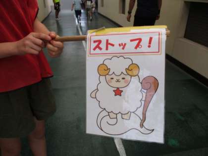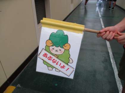 大放課や昼放課になると、たくさんの神山っ子たちが渡り廊下を移動します。みんなが安全に通行できるように、生活委員さんが、かみたんとやまたんの旗をもって、みんなに声かけをしてくれています。おかげで、みんな右側通行ができて、ぶつかることもなくなりました。生活委員さん、かみたん、やまたん、ありがとう!