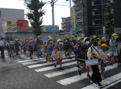 日差しがまぶしい朝です。今日も地域の皆様、保護者の皆様に見守っていただきながら、神山っ子たちが元気に登校してきました。皆様の黄色い旗と温かい声かけのおかげで、今日も安全に登校完了できました。朝早くからありがとうございました。