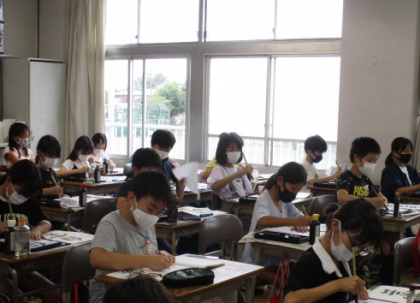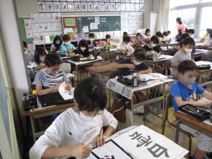 写真は、書写の時間の様子です。今日は「白雲」を練習しました。教室は静まり返り、みんな集中して書いていました。