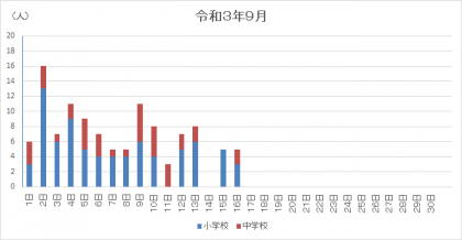 明日から3連休となります。愛知県、一宮市の感染状況は、まだまだ心配な状況です。マスク着用、手洗いの徹底、三密を避け、大声を控えるなど、大人も子供も、感染予防の基本を徹底し、元気に連休を過ごしてほしいと思います。2学期の行事を充実させるためにも、今一度の感染対策を、皆で意識していきましょう!