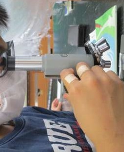 ある5年のクラスでは,理科室で花粉の観察をしました。