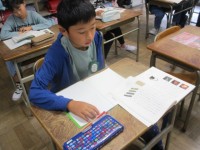算数の授業で「重さ」を学習しています。今日はタブレットを使っ手授業を行いました。身の回りの物を、はかりで重さを測り、タブレットに記録しました。上手に写真を撮り、保存していきます。前回理科の授業で撮影したカマキリの写真の隣に保存できました。タブレットの使い方にも少しずつ慣れてきました。