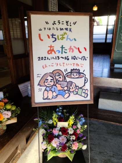 昨年度、神山小に誕生した「かみたん」「やまたん」をデザイン化してくれた、山下ほたるさんの初の個展が、本日より16日まで開催されています。