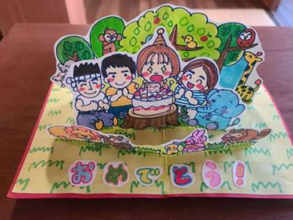 小さいころから絵を描くのが好きで、家族の記念日にイラストをプレゼントしていたそうです。得意の絵を描くことやデザインをすることを生かした仕事に就きたいという将来の夢をもち、学校で絵の勉強を頑張ってきました。今は、デザインの会社で活躍されています。