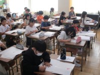 算数の授業で、分数を学習しています。今日は、数直線を使って分数を表す学習をしました。練習タイムになると、タブレットを使って問題をどんどん解いていきました。最後には、リレー形式で順番に問題を解き、みんなで満点を目指しました。正解すると、「ピロリ〜!」と正解音が流れてきて、みんなのやる気も上がってきて、満点ゲットできました。