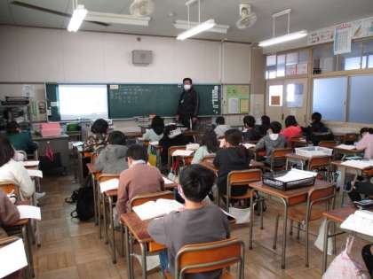 算数の授業も終盤となってきました。今まで習ったことをもとに、学習を発展させていきます。今まで、□+3=6のように、分からない数を□として式に表してきました。今日は、和や差が一定の2つの数を〇と△を使って、すっきり簡単な式に表す学習をしました。式の表し方やしくみをていねいに確かめ、「うんうん」とうなずきながらノートにまとめたところで、練習問題に挑戦しました。5年生の学習につながる大切な内容です。頑張りどころです。