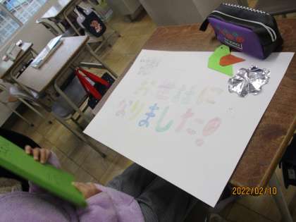 2/10 5年情報児童「6年生を送る会」 公開日 2022/02/10 更新日 2022/02/10 委員会活動 6年生を送る会に向けて,かっこいいかわいいポスターを5年生がつくってくれています。がんばってください!