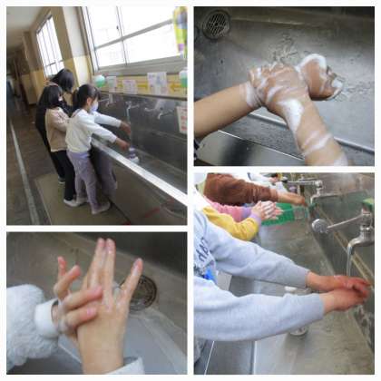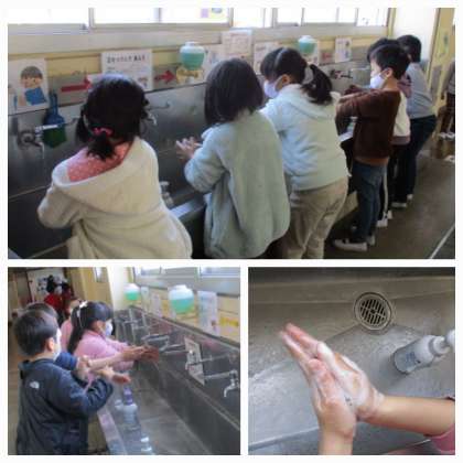 給食の前の手洗いタイムです。今日もすてきなあわあわゴッシーさんがたくさんいました。水は冷たいですが、しっかり手を濡らして、しっかりあわあわゴッシーしていました。きっとおうちでもしっかり手洗いできていたのでしょうね。ピカピカの手になって、給食の準備を始めます。
